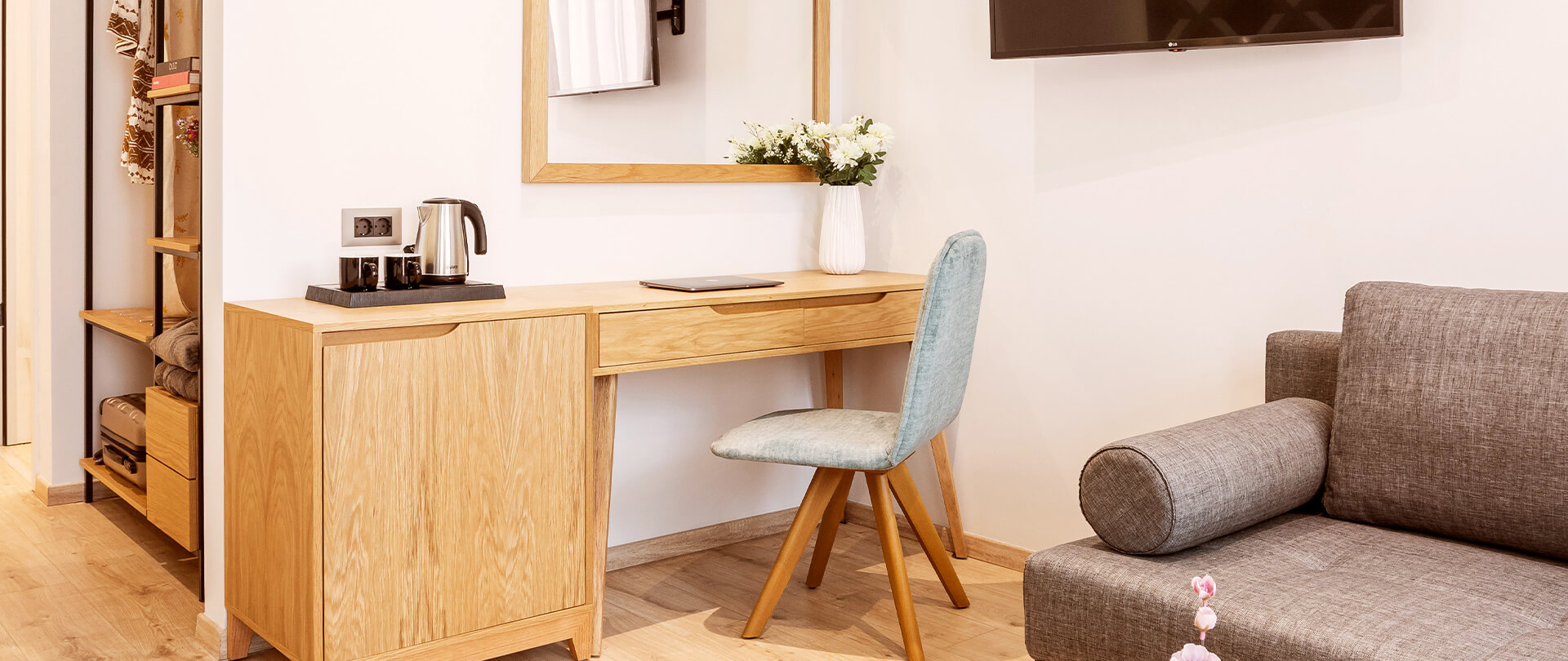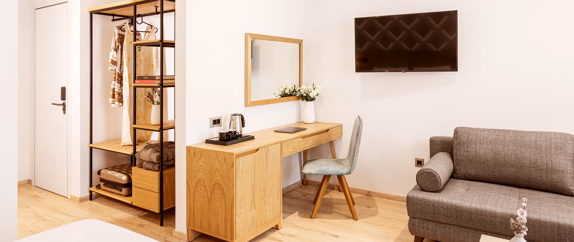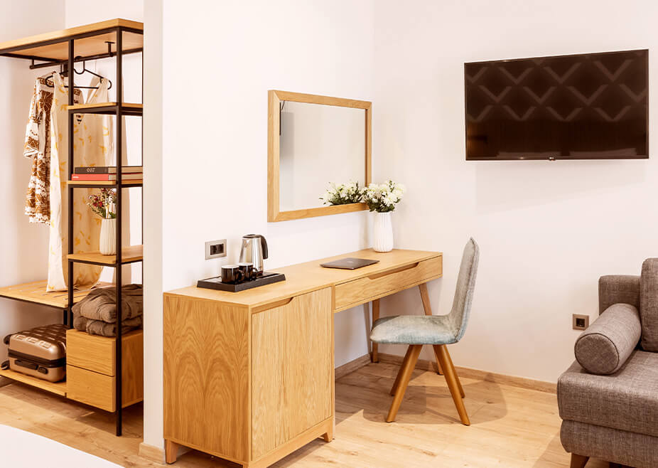 Τα Superior Double/Twin δωμάτια με μπαλκόνι προσφέρουν άνετο χώρο 28 τ.μ., σχεδιασμένο για να προσφέρει απόλυτη χαλάρωση με πρακτικό και καλαίσθητο τρόπο. Η απαλή χρωματική παλέτα σε συνδυασμό με το στοιχείο του ξύλου δημιουργούν μια μοναδική ατμόσφαιρα φιλοξενίας και ζεστασιάς. Το king size κρεβάτι, το μίνιμαλ καθιστικό και η LED τηλεόραση 43’’ θα φροντίσουν για την ξεκούρασή σας, ενώ το όμορφο walk-in shower θα γίνει μια μικρή όαση για την προσωπική σας περιποίηση.