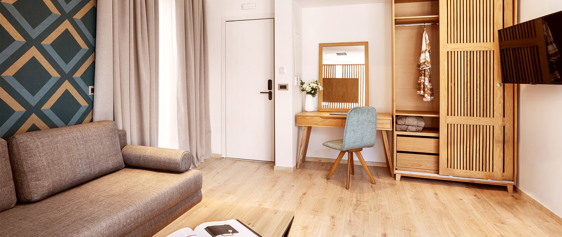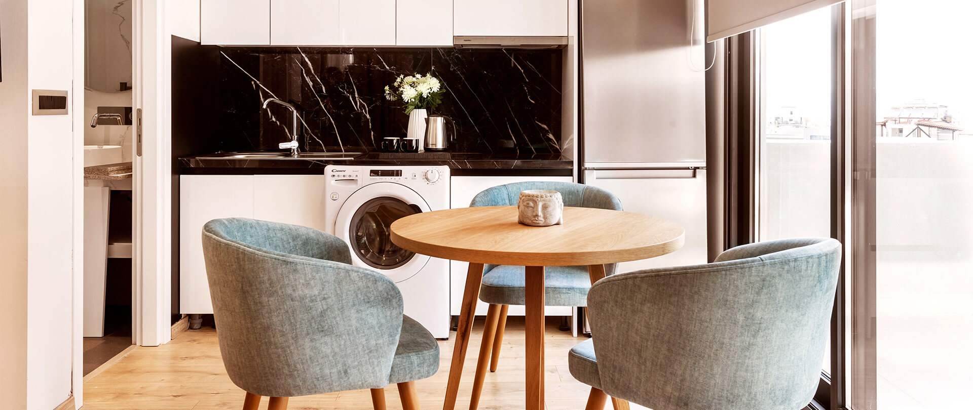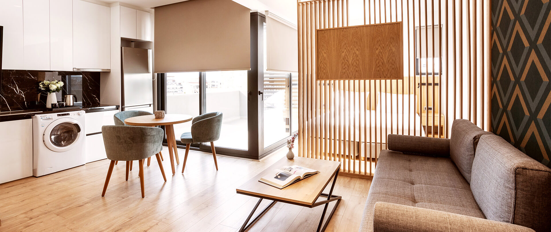 The spacious and bright Suite, spanning 35 sq.m. on the 5th floor, is meticulously designed to provide absolute privacy and a comfortable stay, while offering a wonderful view of Athens from its balcony. Ideal for 2 adults and 2 children, it features a king size bed, a stylish sitting room, a convenient dressing table and a 43” LED TV, promising moments of relaxation. The kitchen is fully stocked and ready to use, and the impressive walk-in shower, equipped with herbal personal care products and high quality linens, will make you feel at home. In other words, all the comforts you need for an unforgettable stay!